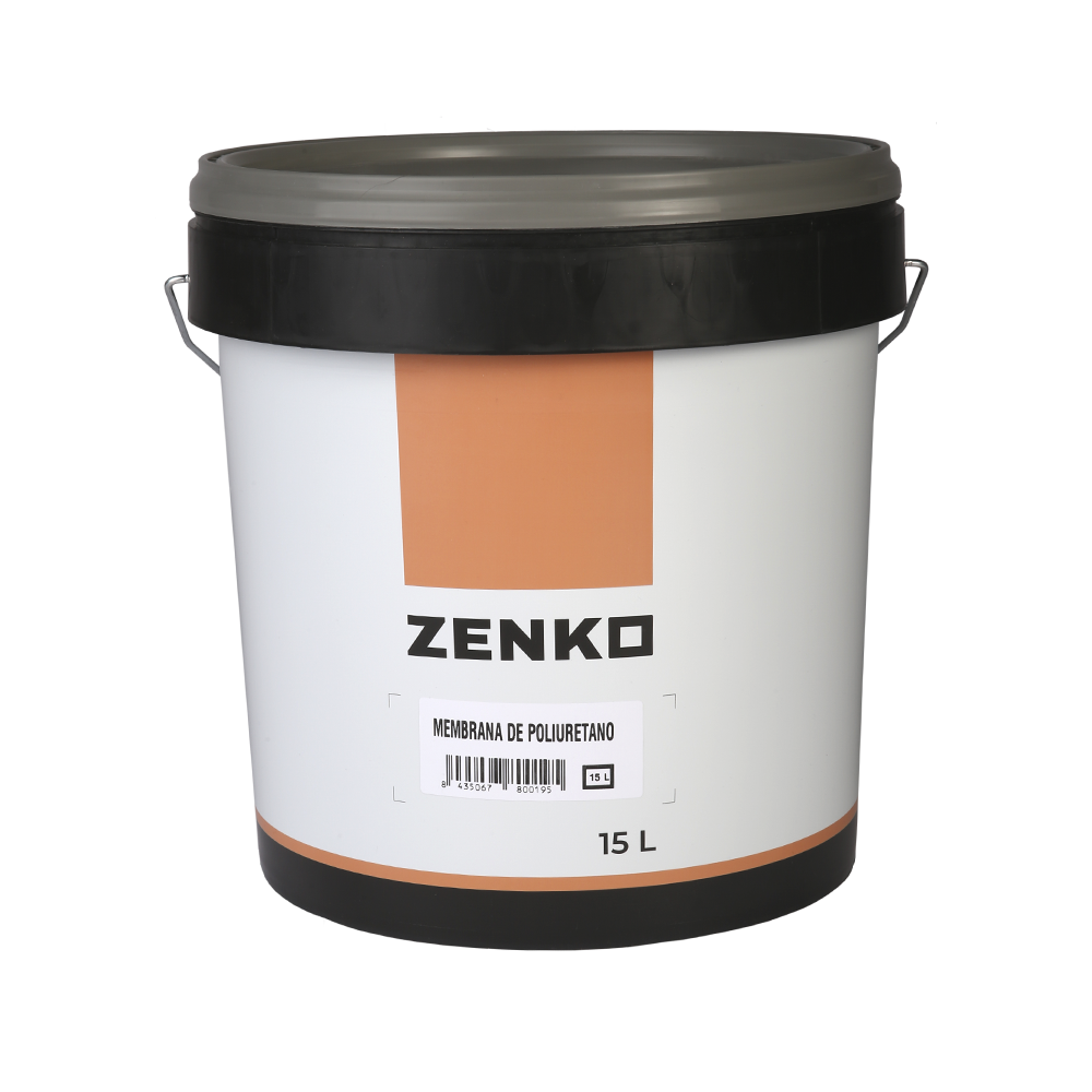 Membrana elástica para terrazas , cubiertas, tejados, a base de poliuretano alifático y copolímero acrílico en dispersión acuosa .