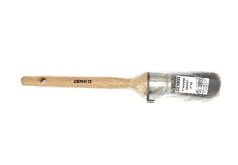 Brocha redonda, de mango madera, virola inoxidable, con cerdas sintéticas de altas prestaciones, de color gris /negro
