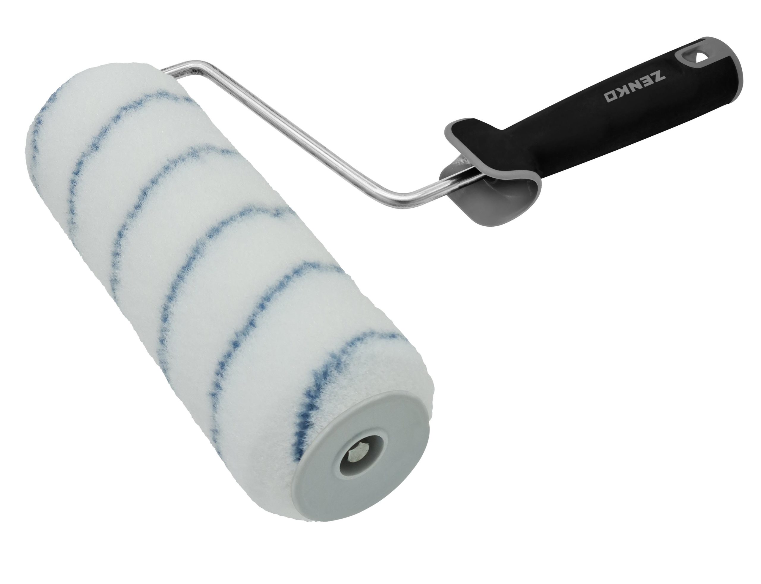 Rodillo de poliamida texturizada continua, altura 12 mm, blanco raya azul, tubo polipropileno 50 mm., 220 mm.